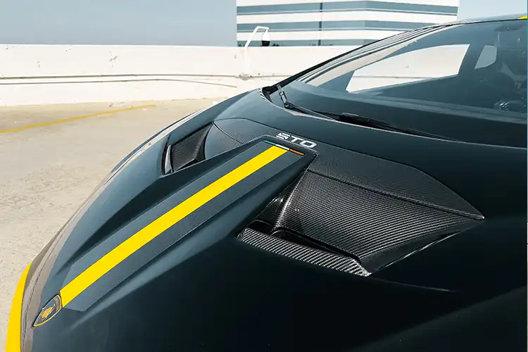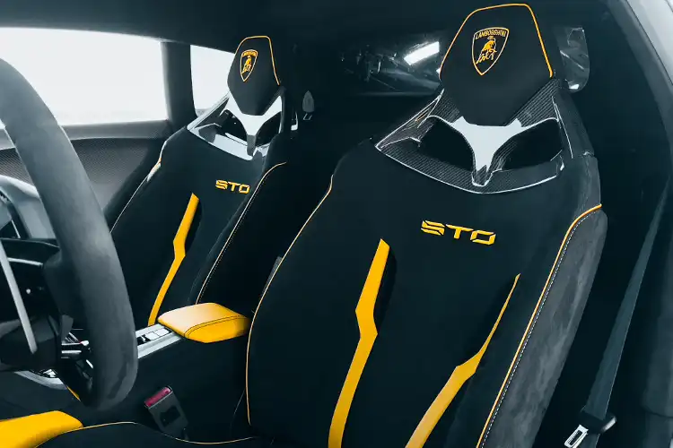 Aerodynamic Dominance: The STO features an adjustable rear wing, hood vents, and enhanced airflow systems derived from Lamborghini’s racing program.